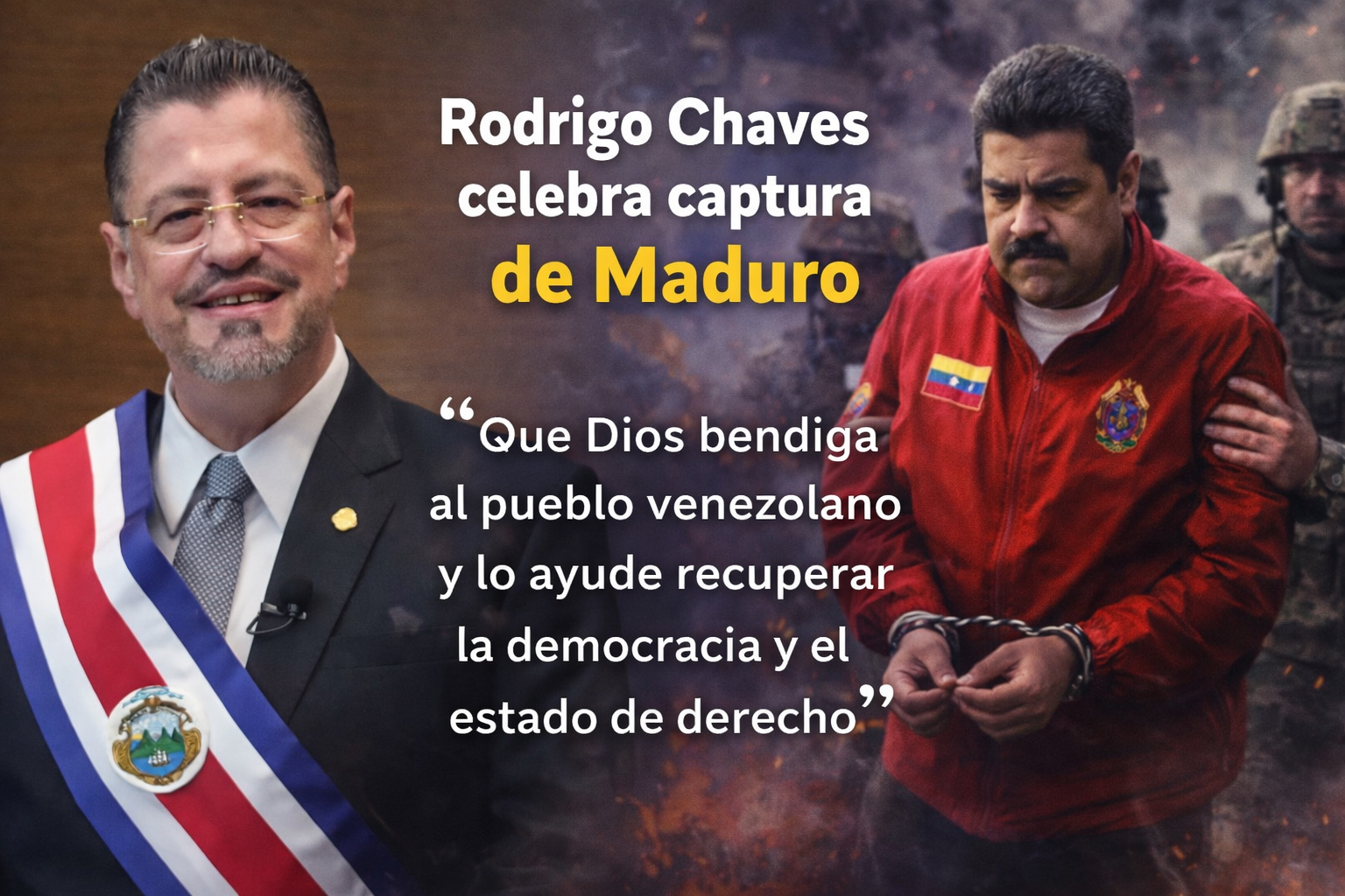 El presidente costarricense subrayó que ahora corresponde a las instancias nacionales e internacionales de justicia determinar las responsabilidades penales del exmandatario venezolano, tanto dentro como fuera de su país, y expresó su solidaridad con el pueblo venezolano, al que calificó como “valiente” tras años de represión, crisis económica y migración forzada.